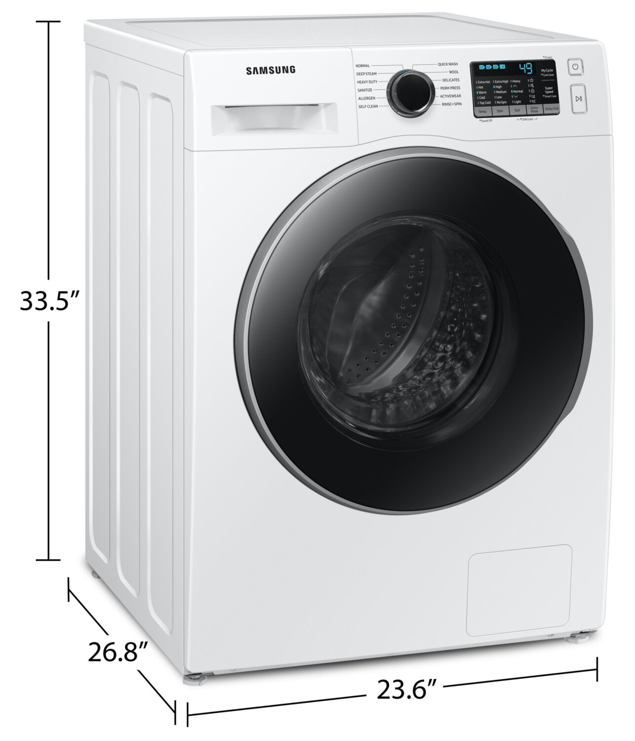 Enjoy a deep clean in less time with this Samsung front-load washer. Super Speed powers through a full load in only 40 minutes, giving you clean laundry in a flash. Plus, this washer uses steam to remove tough stains – without pre-treatments – while offering a deep, gentle clean to take care of your most delicate fabrics. To ensure your washer stays fresh, Self-Clean+ uses hot water and a special spin motion to sanitize the drum and gaskets, so mildew and odours remain a problem of the past.