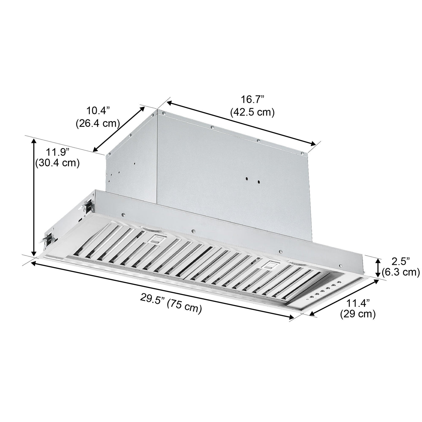 Width: 29.5" (74.9 cm)Height: 11.9" (30.2 cm)Depth: 11.4" (29.0 cm)
