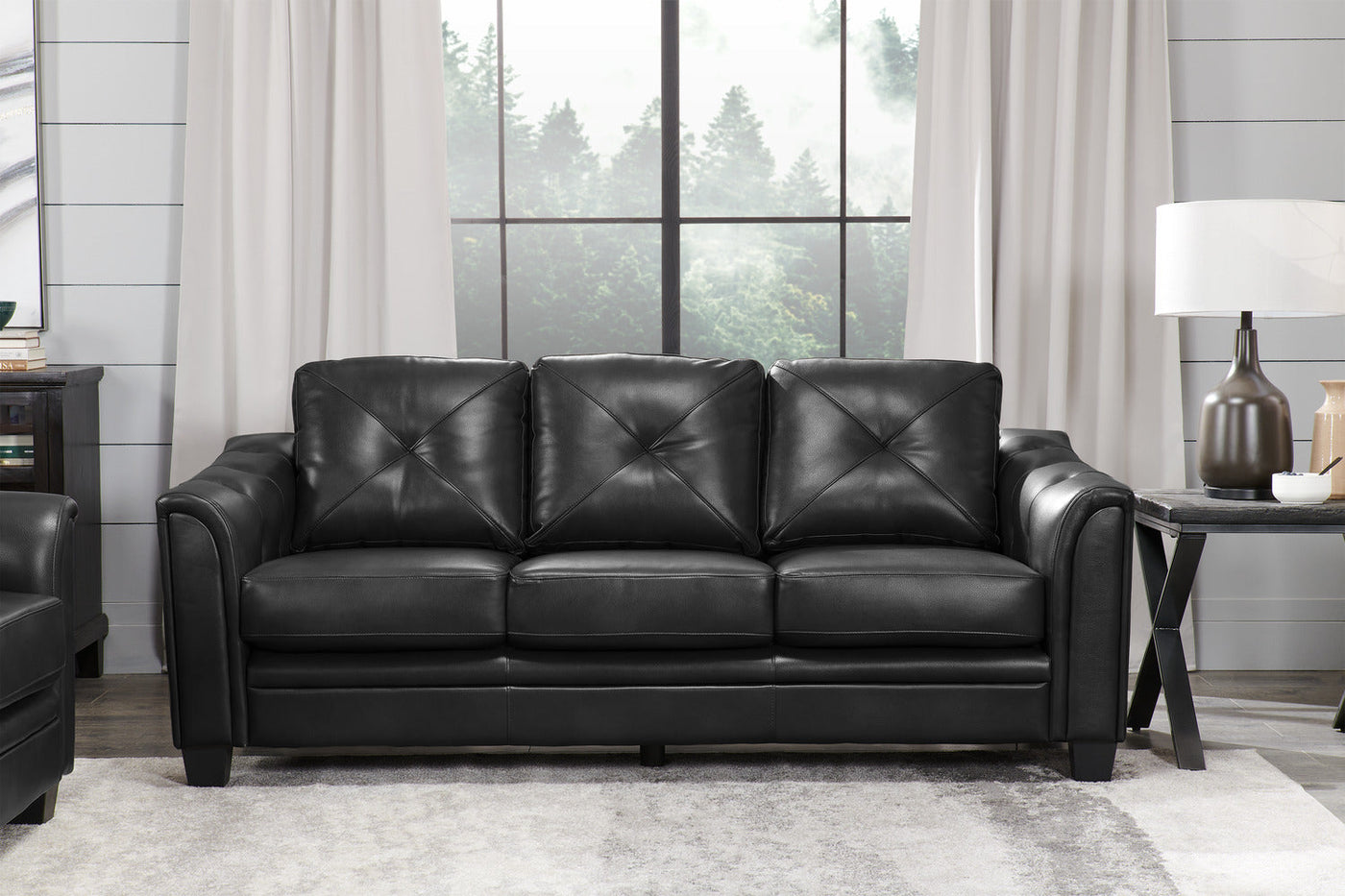Button-tufting on the back cushions and armrests add an elegant feel to this piece. |