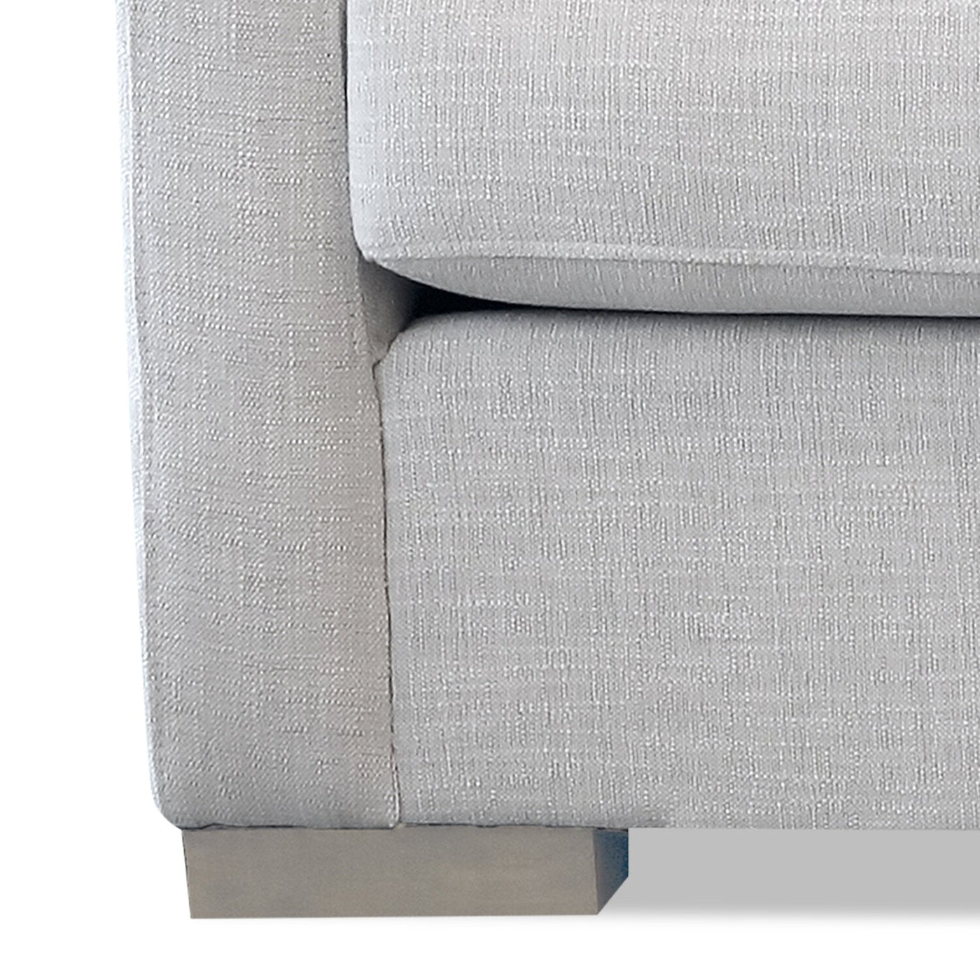 Light-hued block feet blend in with the upholstery's off-white tone. |