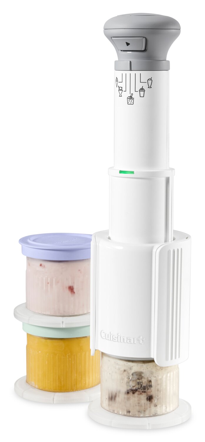 Treat your taste buds to frozen favourites in under five minutes with this Cuisinart FastFreeze ice cream maker. With five preset modes, you can whip up ice cream, sorbet, milkshakes, slushies or your own creations with the turn of a dial. A powerful motor and die-cast blades deliver smooth results fast, while the compact design fits neatly on your counter. Plus, the included three ½-pint dessert cups with lids are dishwasher safe for quick cleanup. Chill, churn and enjoy every single time with the FastFreeze.