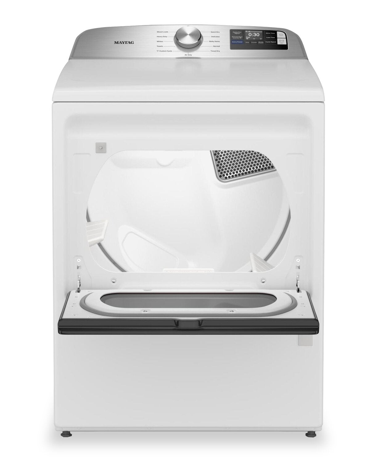 Built to take on your heaviest loads, this Maytag electric dryer makes laundry day feel effortless. Extra Power boosts drying performance, so even thick towels come out ready the first time, while Advanced Moisture Sensing ensures every garment dries evenly. The Quick Dry cycle has you covered when you need clothes in a hurry, and Wrinkle Prevent keeps fabrics tumbling so they’re wrinkle-free and ready when you are. With smart features that let you monitor cycles from anywhere, this dryer brings durability, convenience and confidence to every load.