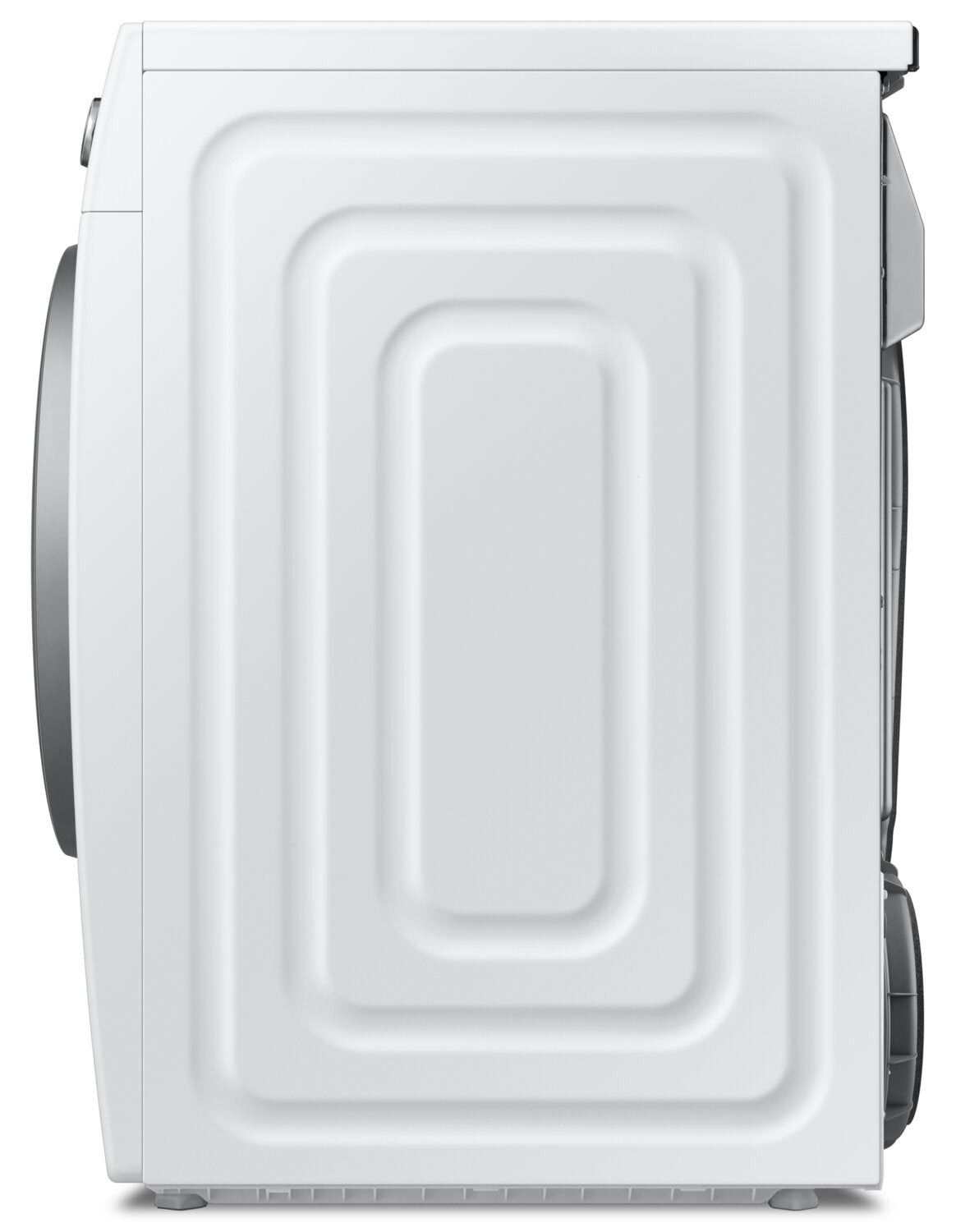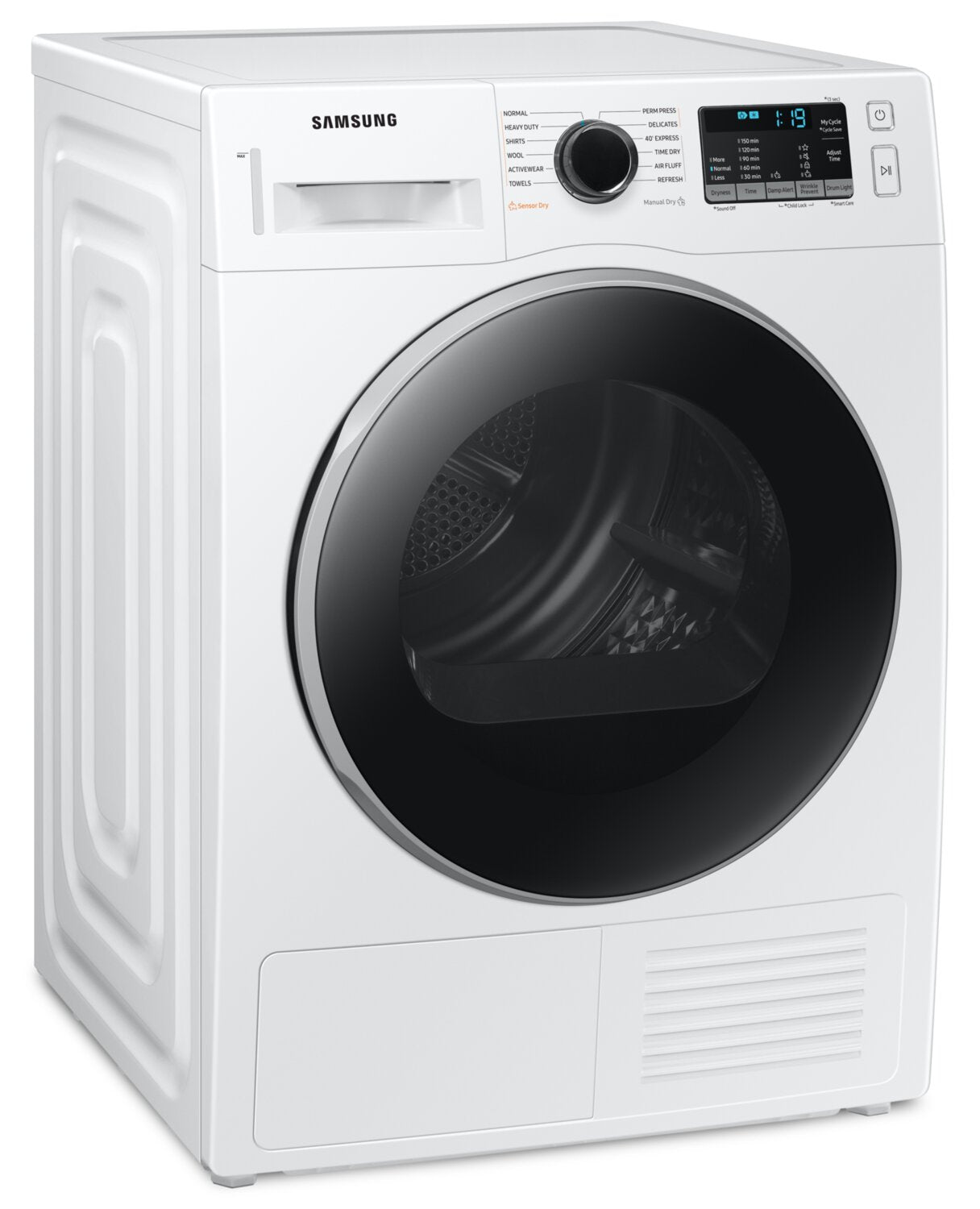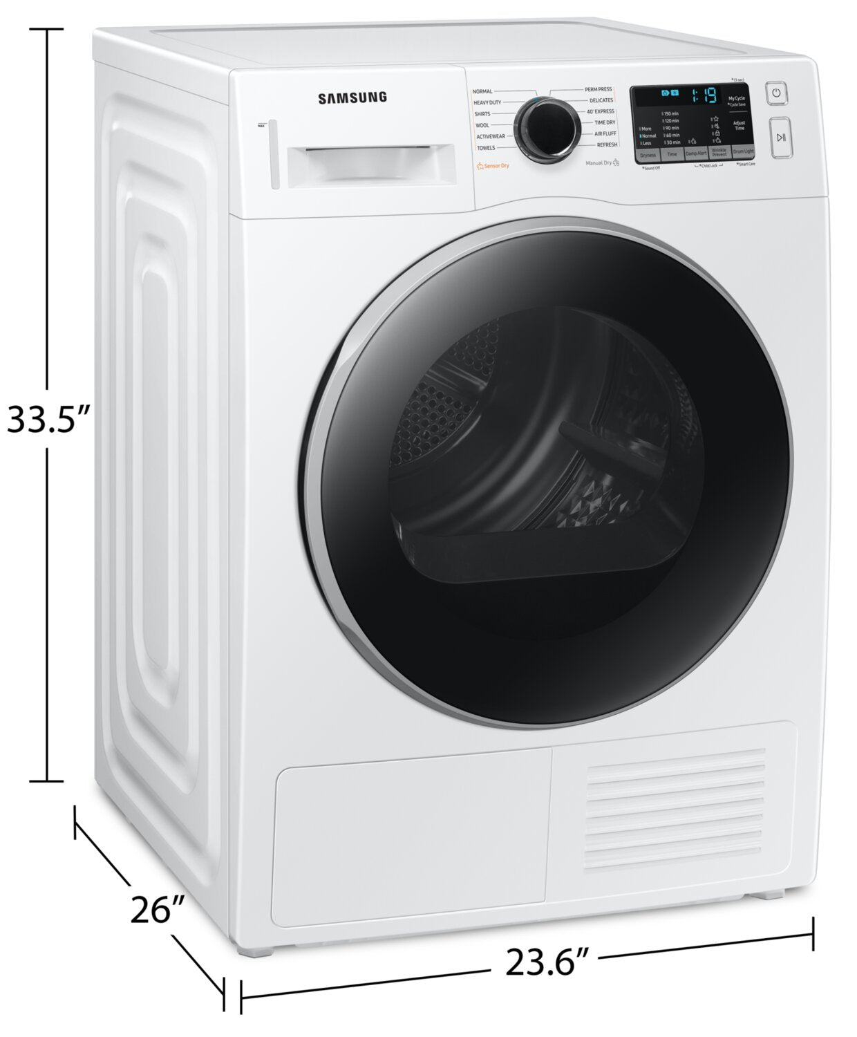 Give your clothes the care they need with this Samsung electric dryer. Using moisture sensors, the sensor dry system monitors how damp your fabrics are and adjusts the cycle temperature and length to ensure your clothes come out perfectly dry. Plus, the Smart Care feature detects and diagnoses problems, and provides easy troubleshooting solutions using a smartphone app. With a compact size, reversible door and ventless heat pump style, this dryer can be placed just about anywhere for laundry day flexibility.