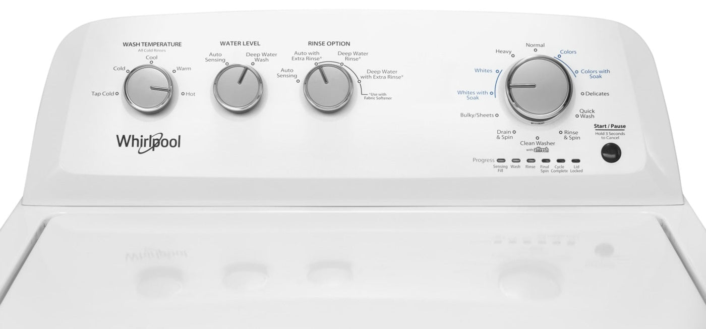 Wash your wools, linens, delicates and more in this Whirlpool 4.4-cubic-foot top-load washing machine. The Smooth Spiral stainless steel wash basket helps prevent snags so you can confidently clean your favourite silks and laces, while the dual-action agitator ensures fabrics receive a thorough clean. Choose your water level on any cycle with Water Level Selection; heavier and more soiled loads get the wash power they need, while smaller loads save water and money. Reclaim a bit of chore time for yourself – wash a load in as little as thirty minutes with the Quick Wash cycle.