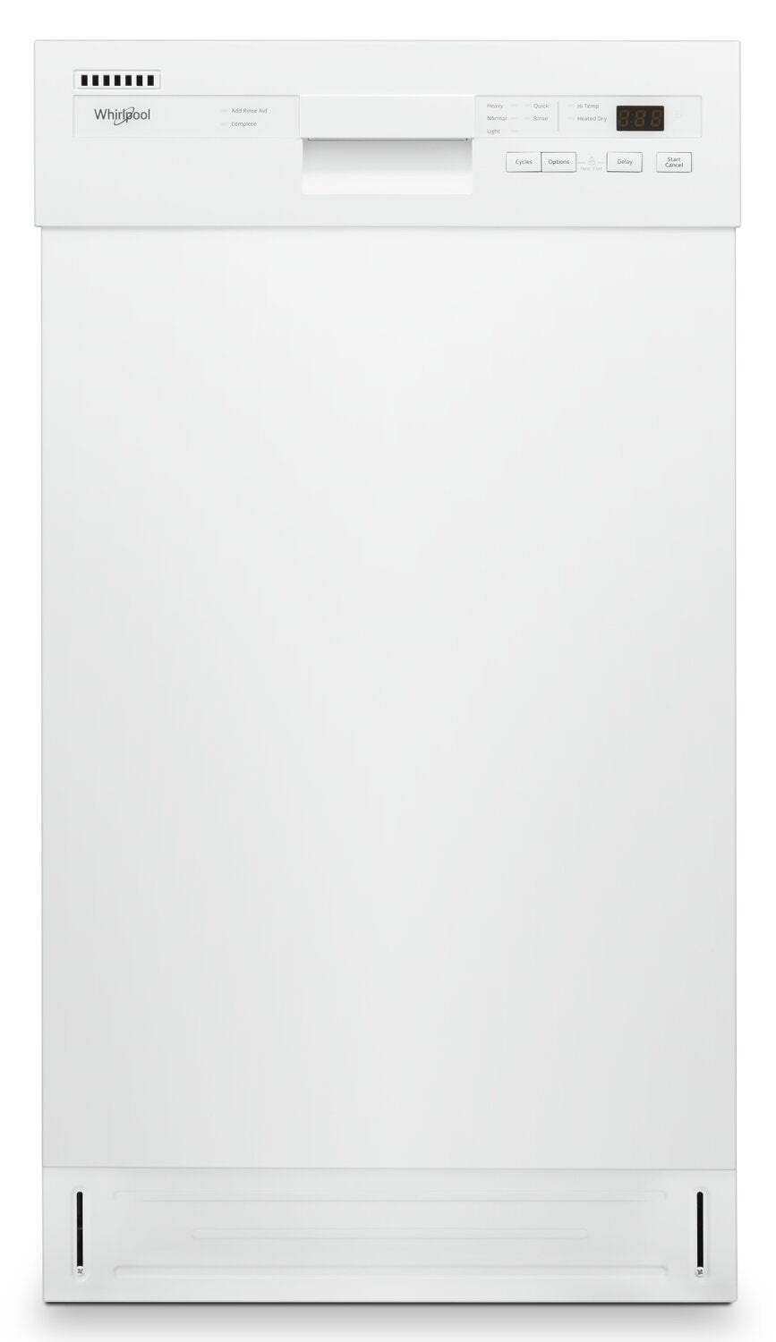This Whirlpool dishwasher delivers the clean you need, even in smaller spaces. Thanks to a spray arm in each rack, your dishes get a thorough clean. Plus, the cycle memory feature remembers the last cycle you ran and starts it with the push of a button for incredible convenience. An adjustable upper rack in the dishwasher easily makes room for taller items, while an ENERGY STAR® certification means it uses less water and energy to keep more money in your wallet.